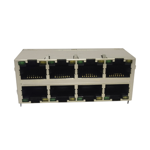 Conectores Ethernet 2x4 puertos 1000 Base-T Conector LED blindado Conector hembra RJ45 Conector Ethernet de Puerto múltiple Rj45