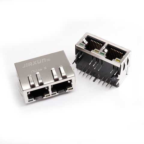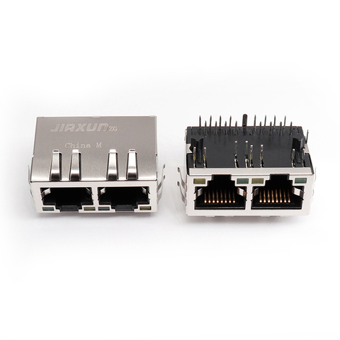 Conector de 1 a 2 puertos Conector de 1x2 puertos PCB RJ45 Modular Jack Interfaz Ethernet Conector hembra RJ45 Modular Jack