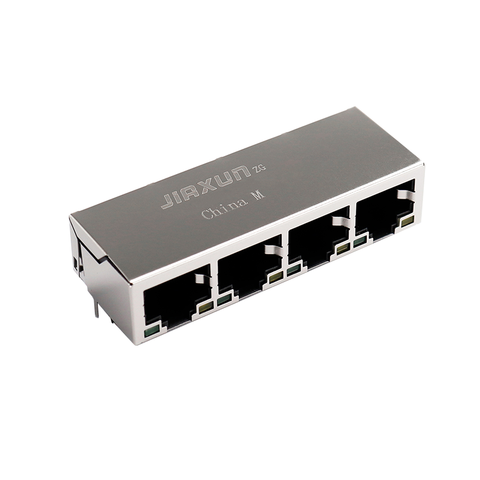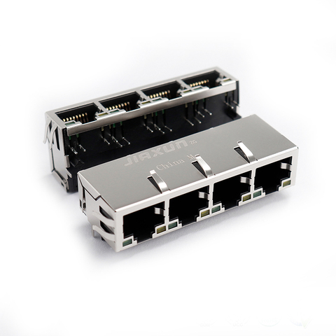 Conectores Ethernet 1x4 puertos 1000 Base-T blindados con LED RJ 45 hembra Jack JG46204AE Conectores de Puerto múltiple Rj45 Cat6